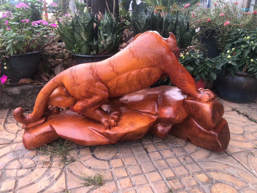 Đặc điểm: Tượng chạm thủ công, liền khối, thần thái dũng mãnh.uy quyền.